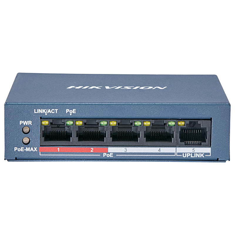 Le DS-3E0105P-E est un switch réseau PoE 5 ports offrant à la fois connectivité rapide et alimentation directe via câble Ethernet, idéal pour vos installations professionnelles ou résidentielles.